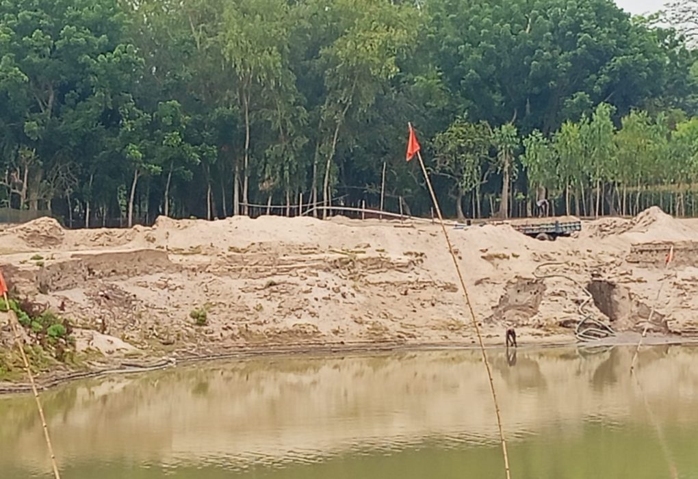 নওগাঁর মান্দায় নদী হতে অবৈধভাবে বালু উত্তোলন নীরব প্রশাসন জনমনে ক্ষোভ