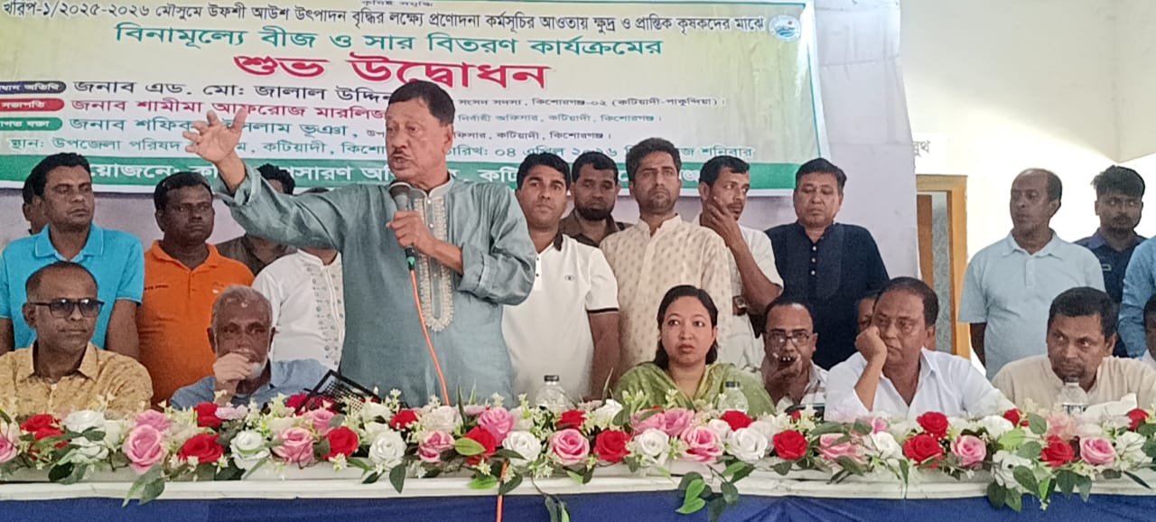 শনিবার(৪ এপ্রিল) দুপুরে উপজেলা পরিষদ হলরুমে উপজেলা কৃষি সম্প্রাসারণ অধিদপ্তরের আয়োজনে উপজেলা নির্বাহী কর্মকর্তা শামীমা আফরোজ মারলিজের সভাপতিত্বে বিনামূল্যে বীজ ও সার বিতরণ কর্মসূচির শুভ উদ্বোধন করেন কিশোরগঞ্জ-২ (কটিয়াদী-পাকুন্দিয়া)আসনের সংসদ সদস্য এডভোকেট জালাল উদ্দিন।উদ্ধোধনী অনুষ্ঠানে স্বাগত বক্তব্য রাখেন কটিয়াদী উপজেলা কৃষি অফিসার শফিকুল ইসলাম ভূঞা।